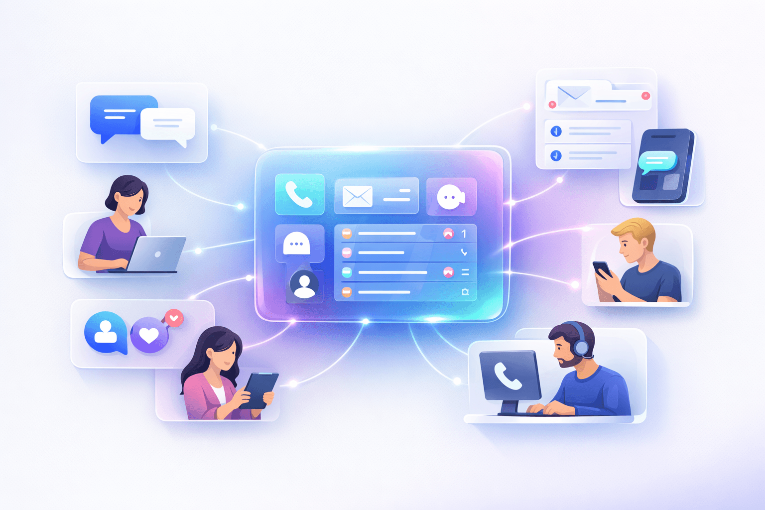 Website chat, email, SMS, and messaging apps managed in one unified workflow.